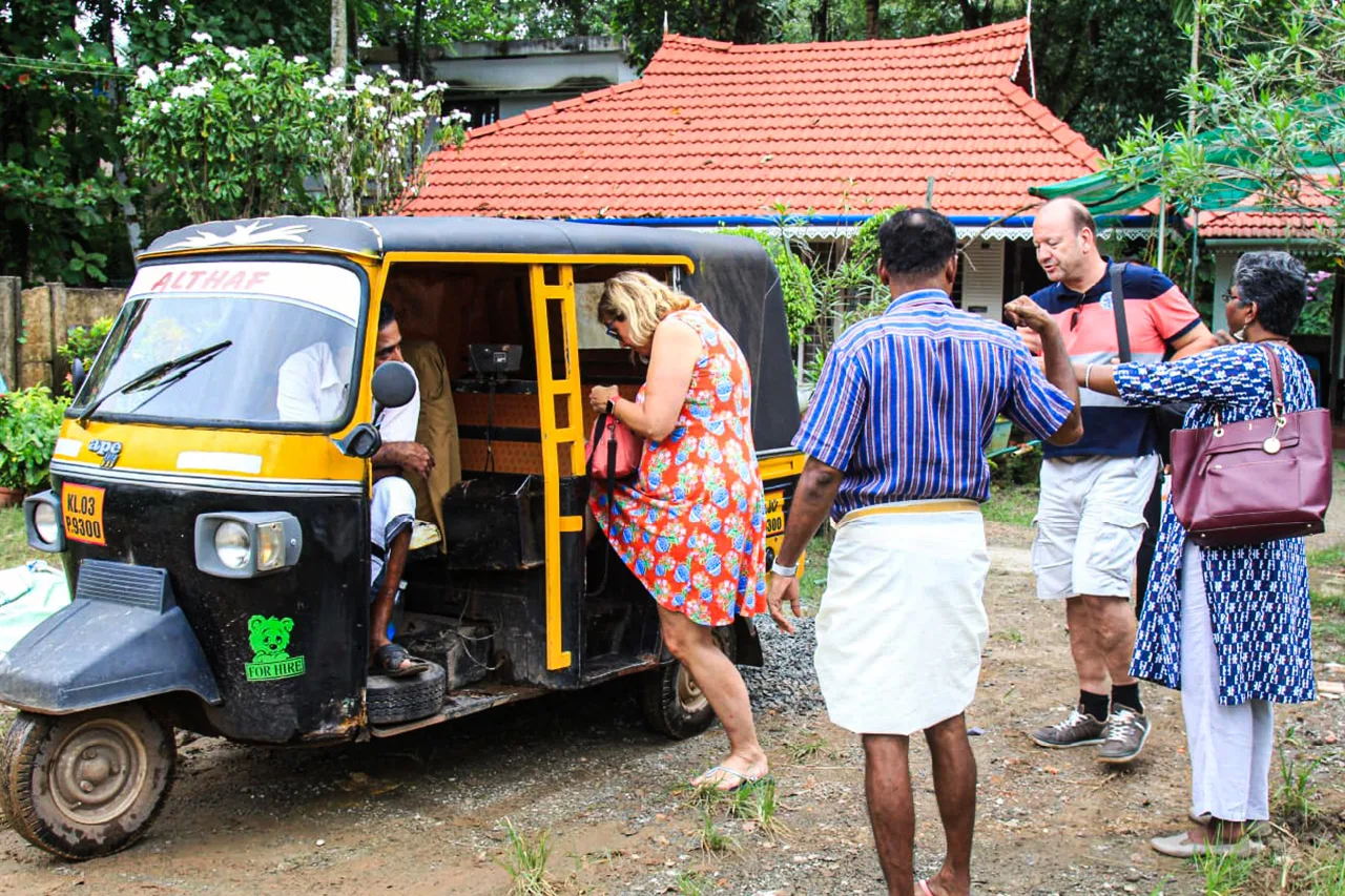 1. A/c transportation for the entire trip. After visiting Vaikom Temple every two persons are traveling in a tuk-tuk to visit the local activities.